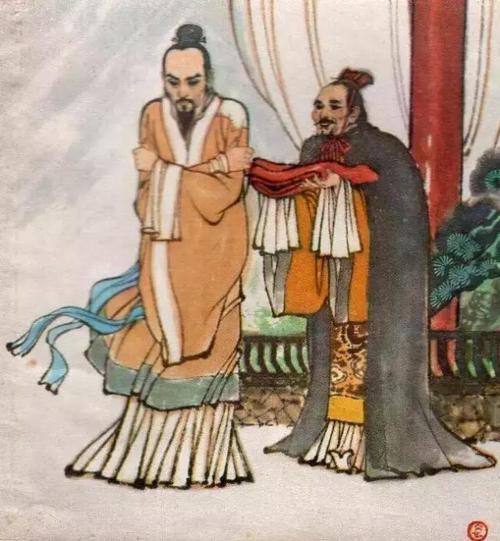 “须贾赠图(ti2)袍”是一个古老的故事:战国时期,魏国范遂随医生须贾出使齐国,受到齐相礼遇,须贾嫉贤忌能,诽谤魏相魏齐,范遂被魏齐命令昏厥。魏齐以为范绥已死,弃郊,范绥醒后被秦使王稽载回秦国,改名张禄,秦王任其为相。须贾使秦,范绥扮成穷人,去见须贾,恰逢大雪,须贾见其寒冷,赠送了一件长袍,范隋乃恕须贾之罪。