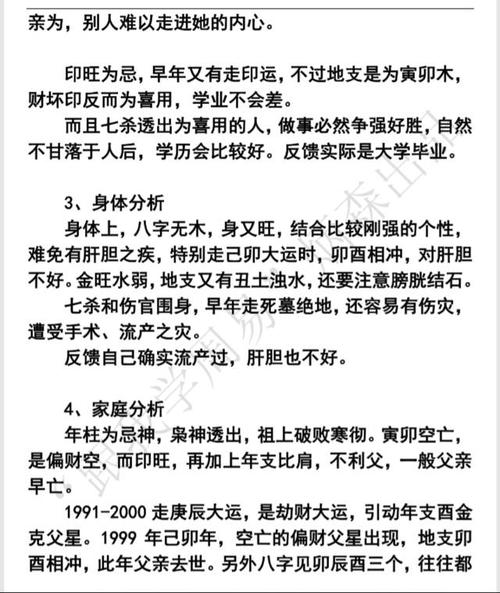 女命七杀代表情人或广义上的男人什么意思七杀是情人,官杀混杂的女命才是不好。正官是丈夫,有正官就不喜见七杀。你这个八字还是挺不错的。你父亲应该是很有挣钱头脑的人,家庭条件很好,你应该还有个弟弟。你是个很热情的人,很有家庭观念,嫁一个人就会奉献所有,哪怕他现在并不富裕
