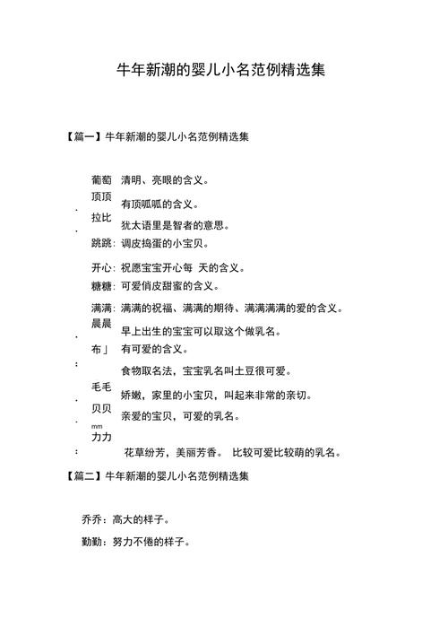 随着牛年的到来,许多准父母的注意力转向了婴儿的名字。选择一个好的昵称不仅可以让婴儿更个性化、更有趣,而且还可以让婴儿在社交场合更方便。本文将介绍一些男孩的昵称,我希望能帮助你。