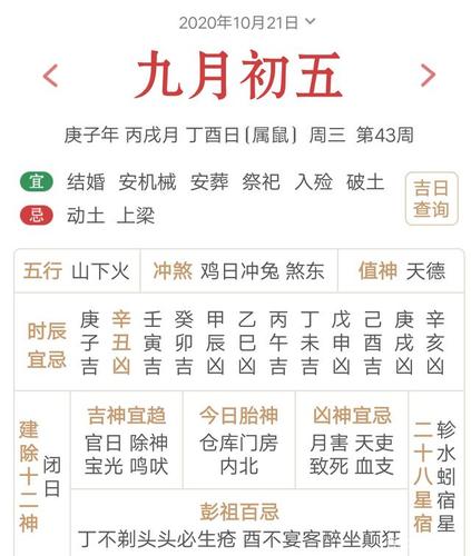 午时[11-13点]冲鼠煞北时冲庚子天兵喜神日禄金匮宜:祈福求嗣订婚嫁娶出行求财开市交易安床赴任忌:上梁盖屋入殓