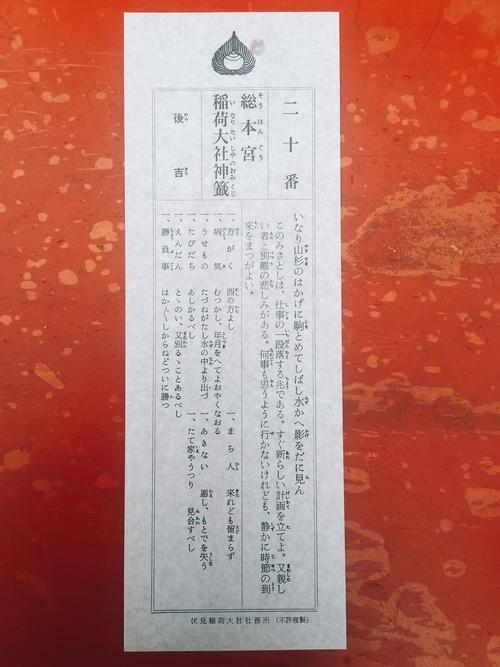 此外,在日本,还有一种叫做“omikuji“抽签活动是寺庙里的传统活动。在这种活动中,人们可以买一张祈祷纸条,然后从一个大圆柱体中提取一张纸条。纸条上会有不同的祈祷信息,如健康、财富、顺利等。