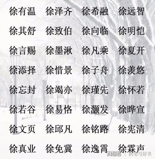 徐若、徐向、徐阳、徐洋、徐恩、徐朋、徐姹、徐悟、徐知、徐璋、徐源、徐辉、徐至、徐诚、徐智、徐百、徐柏、徐敬、徐彦、徐川、徐郧、徐韵、徐欧、徐锦、徐冬、徐元、徐帆、徐尚、徐钦、徐霖、徐恒、徐豪、徐伟、徐垣、徐思。