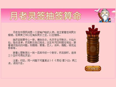 我相信很多人都知道月亮总是生活在神话中的任务中,这个月也负责婚姻,所以自然受到很多年轻人的喜爱,毕竟,在神话中,每个人的婚姻都掌握在月亮的老手中。那么,月亮老人的第73个签名是关于什么的呢?让我们一起看看。