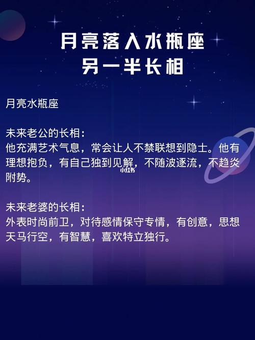 看了上面的文章你知道月亮水瓶座有什么特点,月亮落在水瓶座代表什么想必你已经差不多明白了吧。月水瓶很少拥有平顺的家庭生活,因为他有非常规又非传统的倾向,而且他会被自己的复杂状况所吸引,终其一生追求将其简化。