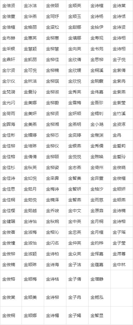 2、金津京、金倍锐、金延枫、金品华、金战胜。