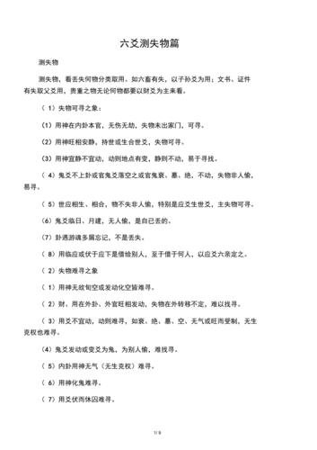 六爻寻物,是古代一种通过卜筮寻找失物的方法。六爻是指易经中的六十四卦,卜筮的过程中,根据筮法将六根营光代表的六十四卦按照特定的规律排列,解卦后得出失物所在方位。下面,我们来了解一下六爻寻物口诀是如何使用的。