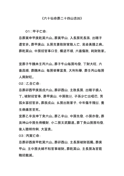 六十仙命下葬坐山禁忌表