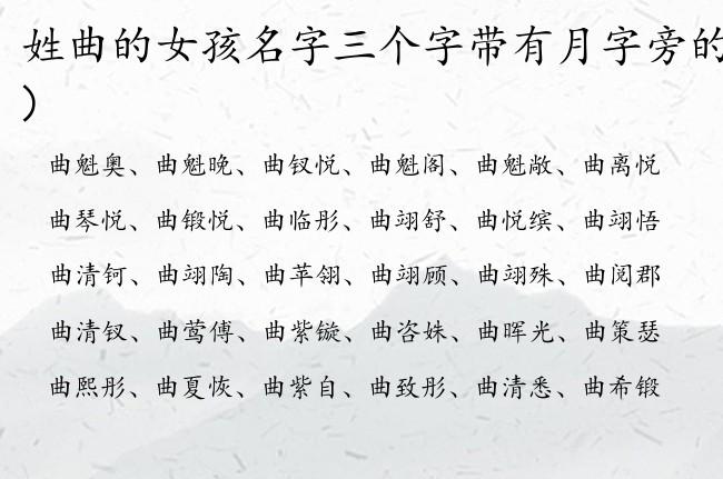 姓曲的女孩取什么名字好,可选用婧如、玥涵、芷婵、美媛、家姝等名字,具体名字解释如下。