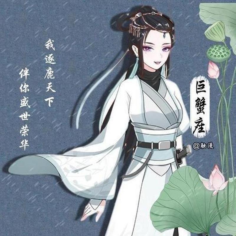 巨蟹座的人物形象通常是温柔体贴、善良有爱的,因此在古装动漫中,巨蟹座的形象也是温情可人的。例如,《琉璃美人煞》中,古月阅就是一个非常典型的巨蟹座形象,她温柔正直、执着坚定,制造了不少感人的情节。