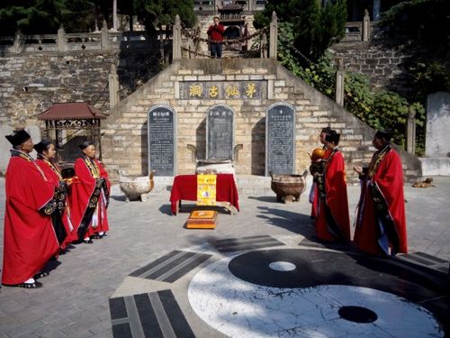 游人、香客先要将身上背的,手里提的包放在拜垫旁边,然后在神像前左、右两边的蒲团后端立,默祷所祈之事意,然后行三皈九拜礼礼。