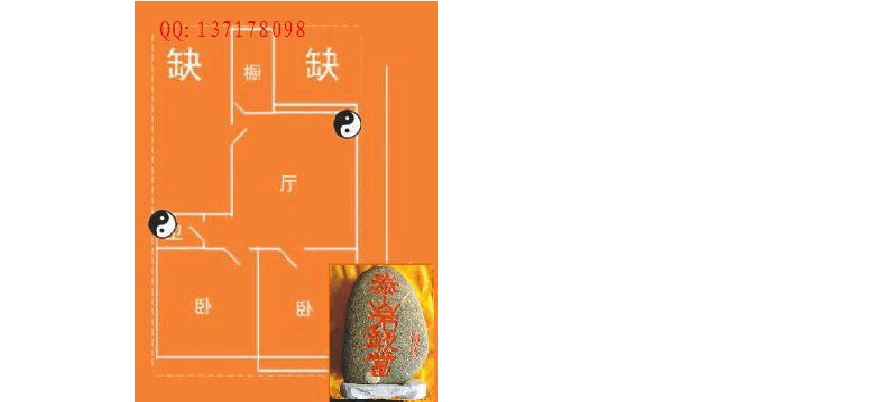 2、缺角煞:住宅缺角,对主人的运势有着很大的影响。通常来说,缺西北角东北角不利男人事业和身体,更不利于子孙,缺东南角西南角不利女主人。用桃木葫芦挂在房间其他三个墙角,可以解煞,使用泰山石敢当放在缺角处可以化解缺角煞。