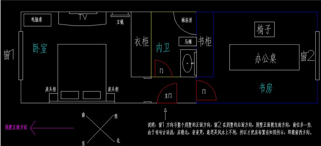 这个方向不适合卧室,因为不能睡觉,而且经常在深夜做事、看书、看电视,所以容易睡眠不足。