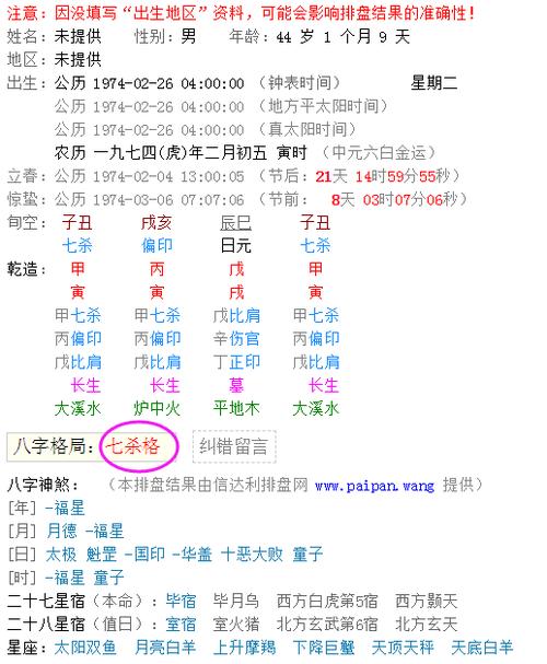 命入七杀格偏财格的意思列出了四列