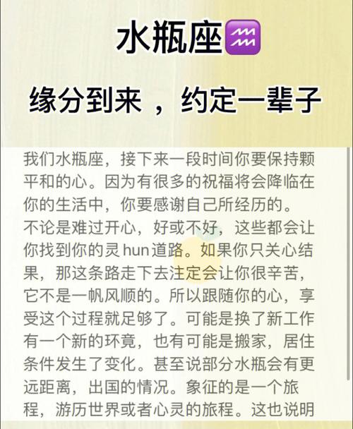 水瓶座是很相信缘分的哦,特别是水瓶座对别人的第一印象,会影响到接下来你们的相处,水瓶座的理智和客观决定了他在看待感情时很少会动用自己主观的色彩,即便是喜欢上一个人水瓶座,也会反复考量两个人想追求的东西是否相同。再喜欢一个人水瓶座,考虑的也是彼此合不合适,不合适的爱情,水瓶座不想深入了解。在感情上分分合合的事情本来也是家常便饭了,水瓶座同样不会给自己太大压力,合适就走下去,不合适就分手,哪有那么多爱恨情仇呢?水瓶座可是一个快意恩仇的人,随缘的态度,会让水瓶座生活得更快乐些,缘分到了,自然就会遇到合适的人,缘分不到,再挣扎也不过爱情受伤。