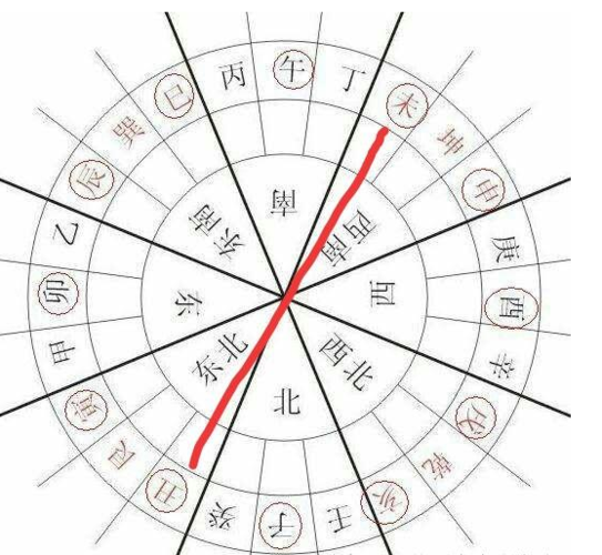 坐艮向坤申,右水倒左出丁方,对面三台案,坐艮寅为得位,结穴自土星角出,收右边进神水过堂,必定人丁大旺,富贵双全。