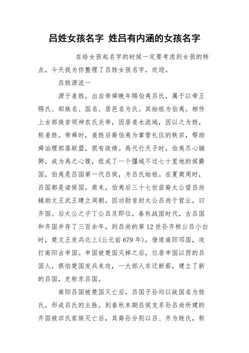 姓吕的女孩取什么名字好适合的字