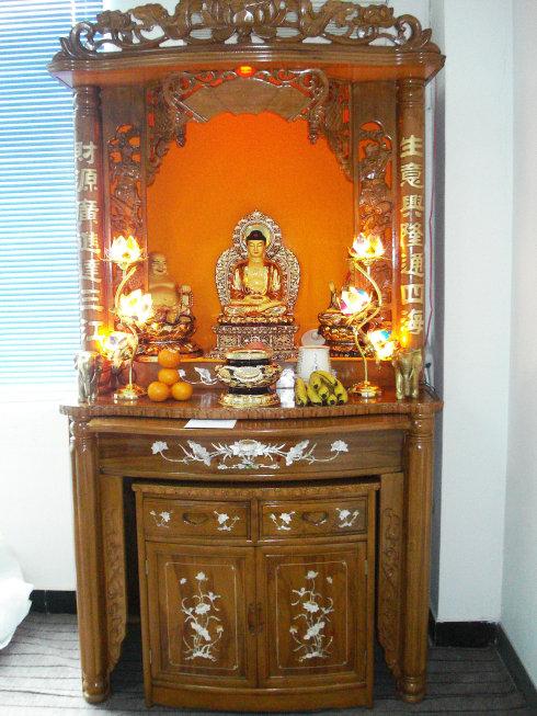 设置佛堂,应该选择客厅的正位,也就是主人所坐位置的方向,佛像背后不可临窗,应当面对门窗,阳光充足,使人进门便可一目了然。佛堂是家庭的中心,要能产生安定力和安全感的作用。至于地理师所定的方位可以作为参考,但也不必拘泥、迷信。只要不把佛像面对厕所、炉灶或直接面对自己的卧床就好。在设立佛堂时,应选择一间静室,不是小孩、猫狗嬉戏出入之处;也不是会客、谈笑、宴饮之处,而只是用于礼诵、禅修,不作其他用途。