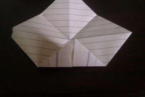将纸的两个小三角向外翻转,形成一个小长方形。