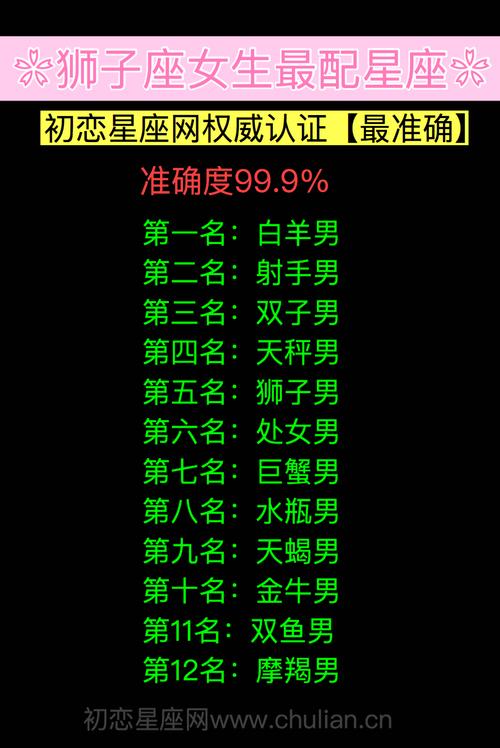 5、狮子女:大三到五岁。狮子座的女生性格比较骄傲,她们也很自信。而且霸气十足,所以找一个同龄或者是比自己小的人,可能有点hold不住她们。而找一个比自己稍大一些,并且性格比较有耐心的人才更适合她们,两个人之间的矛盾也会少很多,更能长久。