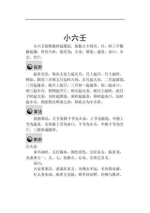 2、小六壬看姻缘从哪起卦:女人起卦小六壬应从哪个宫位起?3、小六壬看姻缘从哪起卦:小六壬预测财运从什么起卦从你当下预测的日子时辰来起卦记住按农历来起卦也就是阴历看日历起卦