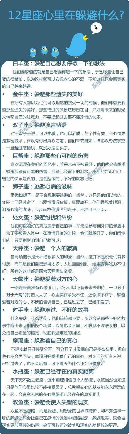 白羊座:赢!胜利最重要的金牛座:三美,美丽的钞票,美味的食物,美丽的双子座:孤独,无法忍受孤独的癌症:安全,物质,生活,情感安全最重要的狮子:能力,能力不需要被别人看不起