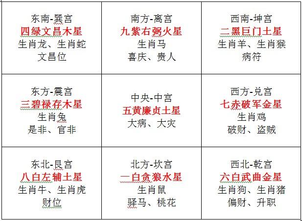 九星是一白、二黑、三碧、四绿、五黄、六白、七红、八白、九紫
