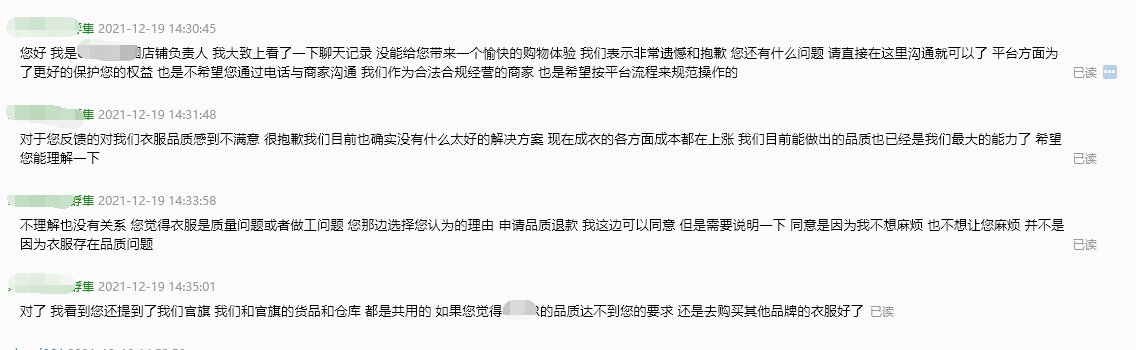 跟看这篇文章的卖家朋友们说一下,我们开门做生意,和气生财是不假,但是真的应该有点原则,有点底线。面对蛮横无理的一些顾客,就唯唯诺诺卑躬屈膝,只会让这些人变得越来越无法无天,很多人真的就是让一些卖家给惯出来的。