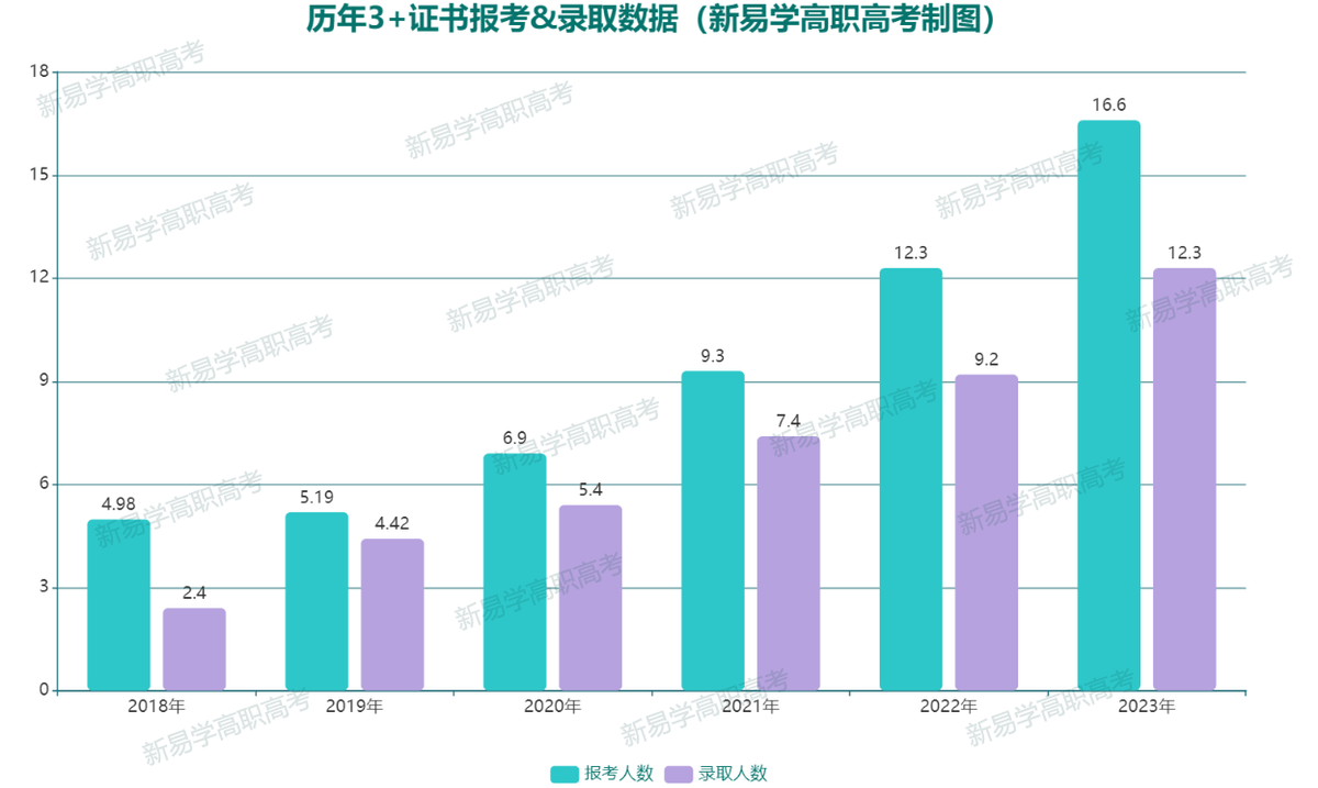 2018年:“3+证书”考生4.98万,录取2.4万人