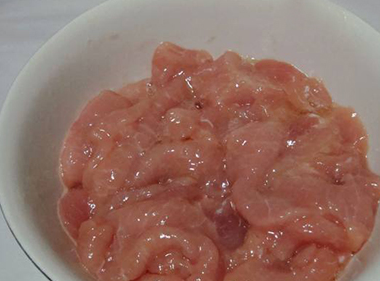 1、首先把猪里脊清洗后,切成片状备用即可;