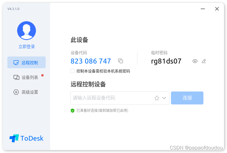 安装结束后,在终端中输入todesk命令启动,启动界面如下图所示: