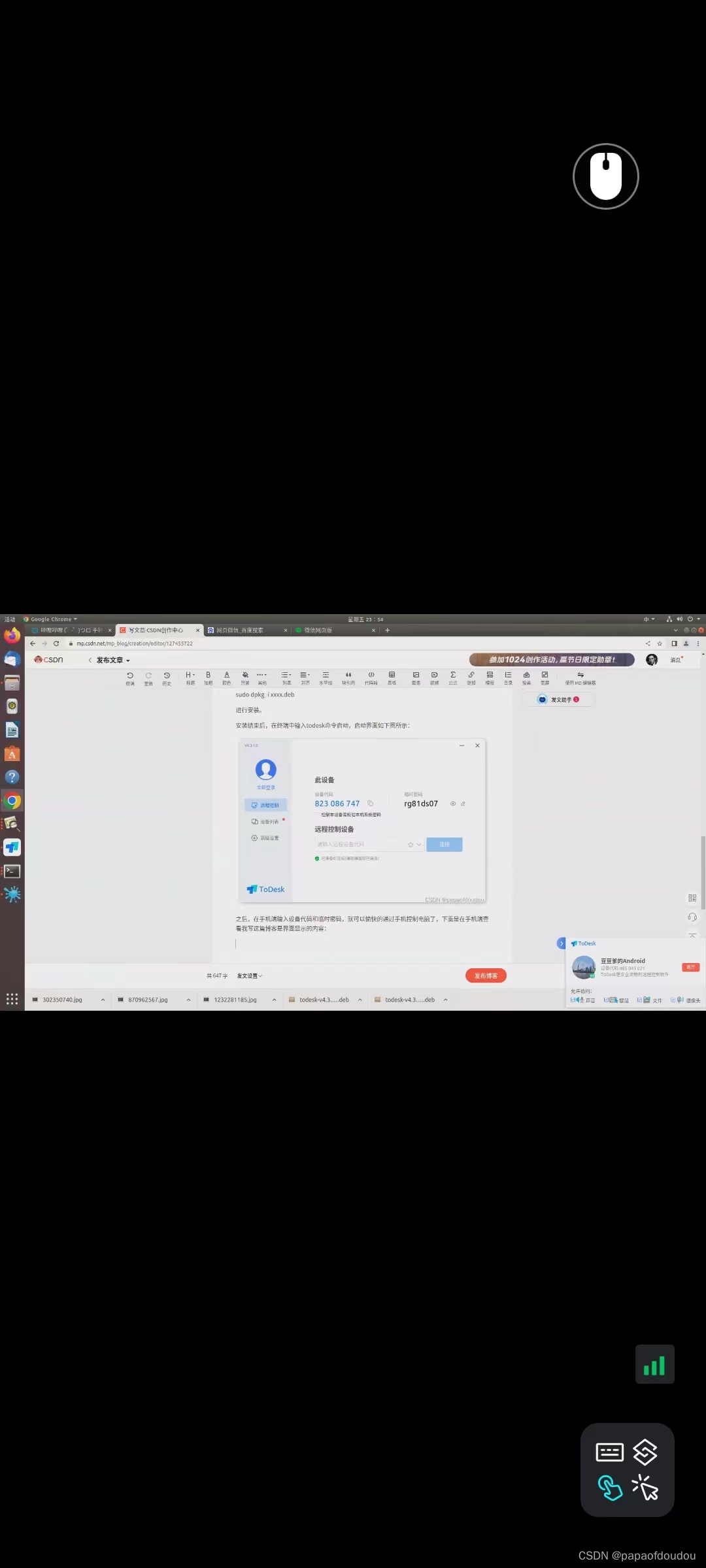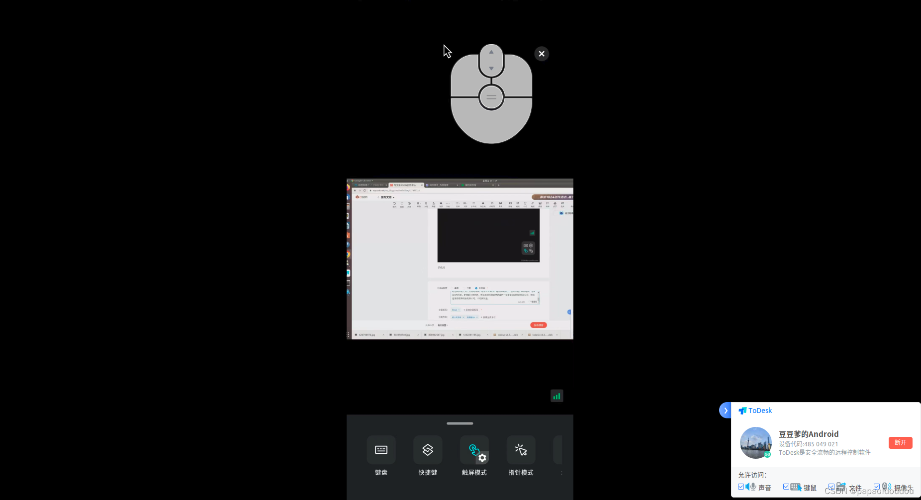 之后,在手机端输入设备代码和临时密码,就可以愉快的通过手机控制电脑了,下面是在手机端查看我写这篇博客是界面显示的内容:
