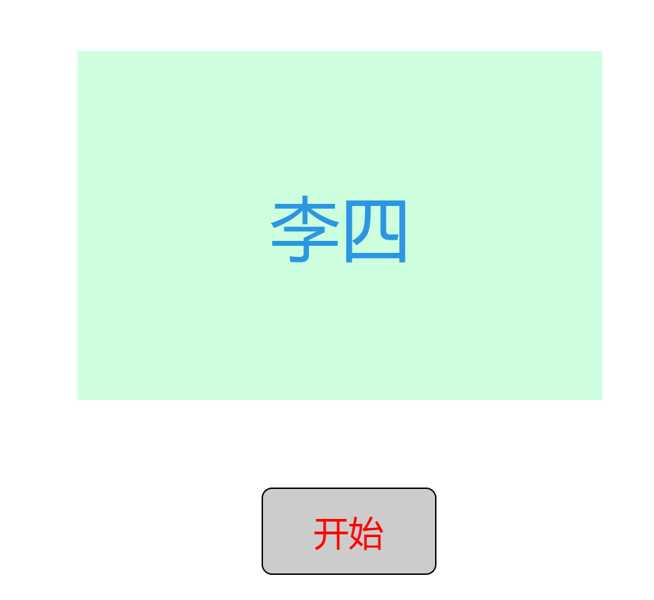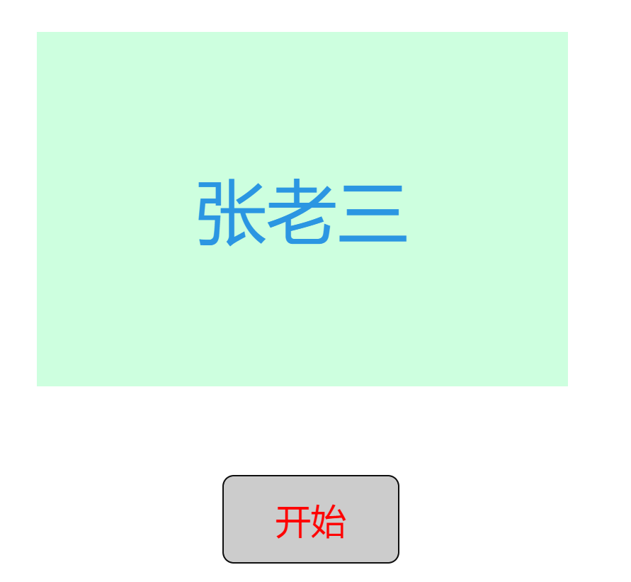 首先建一个块级元素用来展示随机抽取的过程和最后的结果,下面写个按钮控制开始和结束。块级元素和按钮的属性可以按照自己的喜好修改。