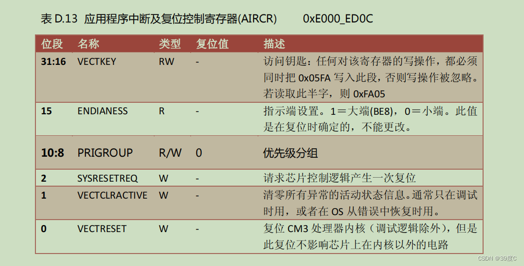 (位10:8)是优先级分组,这个会和另外一个寄存器(NVIC_IP)配合使用的。所以等我们了解寄存器(NVIC_IP)后再一起配置。