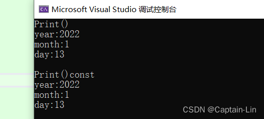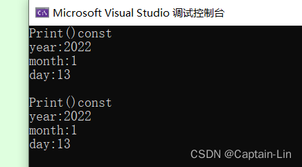 {Date d1(2022, 1, 13);d1.Print();const Date d2(2022, 1, 13);d2.Print();return 0;