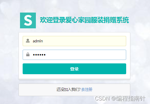 用户登陆界面:前端用户可以在此进行注册登陆