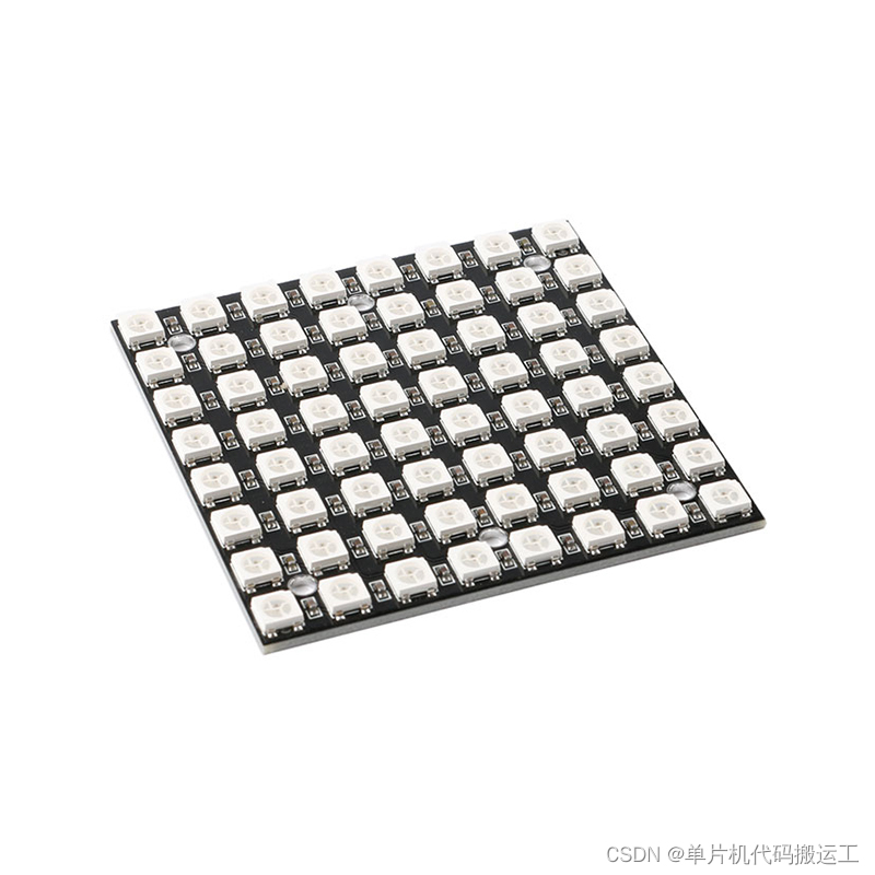 这里用的是8X8 WS2812B RGB灯模块,其他WS2812B 一位,两位,四位灯均一样,其他具体可以看下手册 ,主要参数是引脚定义和时序。