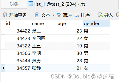 案例:根据年龄进行升序排序。