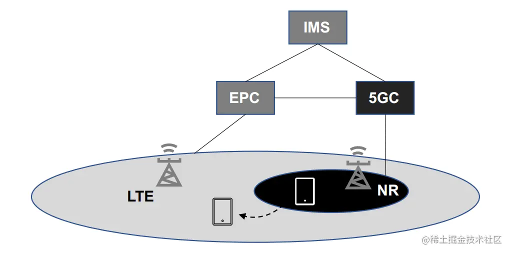 当正在进行的呼叫从NR切换到LTE时, 重要的是切换时间应尽量短,因为此时呼叫正在进行。除了使用无线之间的切换和N26接口来最大限度地减少中断时间外,没有其他的选择。