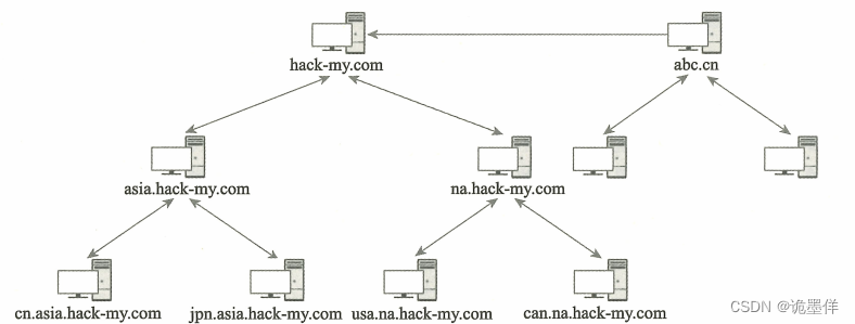 表结构和配置,所有的域名形成一个连续的名字空间,如下图所示。可以看出,域树