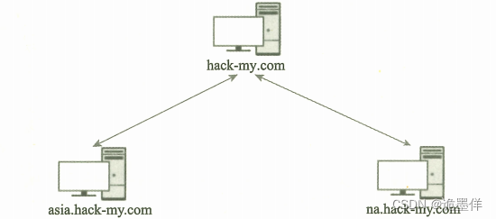 代表域名的一个层级。如下图所示,hack-my.com 是父域,其余两个是其子域。