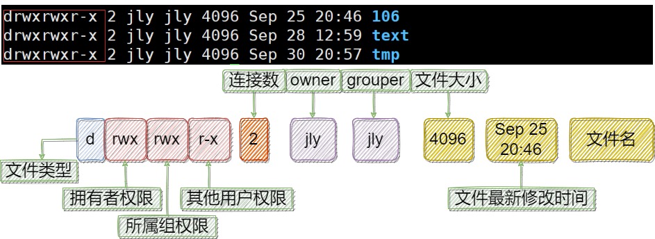 后九位三三为一组,分别代表拥有者、所属组、其他用户的权限。其中r代表可读,w代表可写,x代表可执行。-代表不具备该权限。
