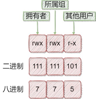 三三为一组,非-位用二进制1填充,-位用0填充,得到角色权限的二进制,在将这些二进制转化为八进制,即可使用八进制来表达角色的权限。