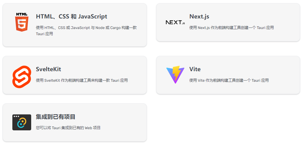 Tauri 构建的桌面应用体积远远比 Electron 构建的小得多。因为它放弃了体积庞大的 Chromium 内核和Nodejs,tauri前端集成了 webview,后端使用 Rust。而且 Tauri 构建应用还提供了诸多初始化程序模板,比如原生 JavaScript、Vue2/3、React、Svelte.js、SvelteKit 等。