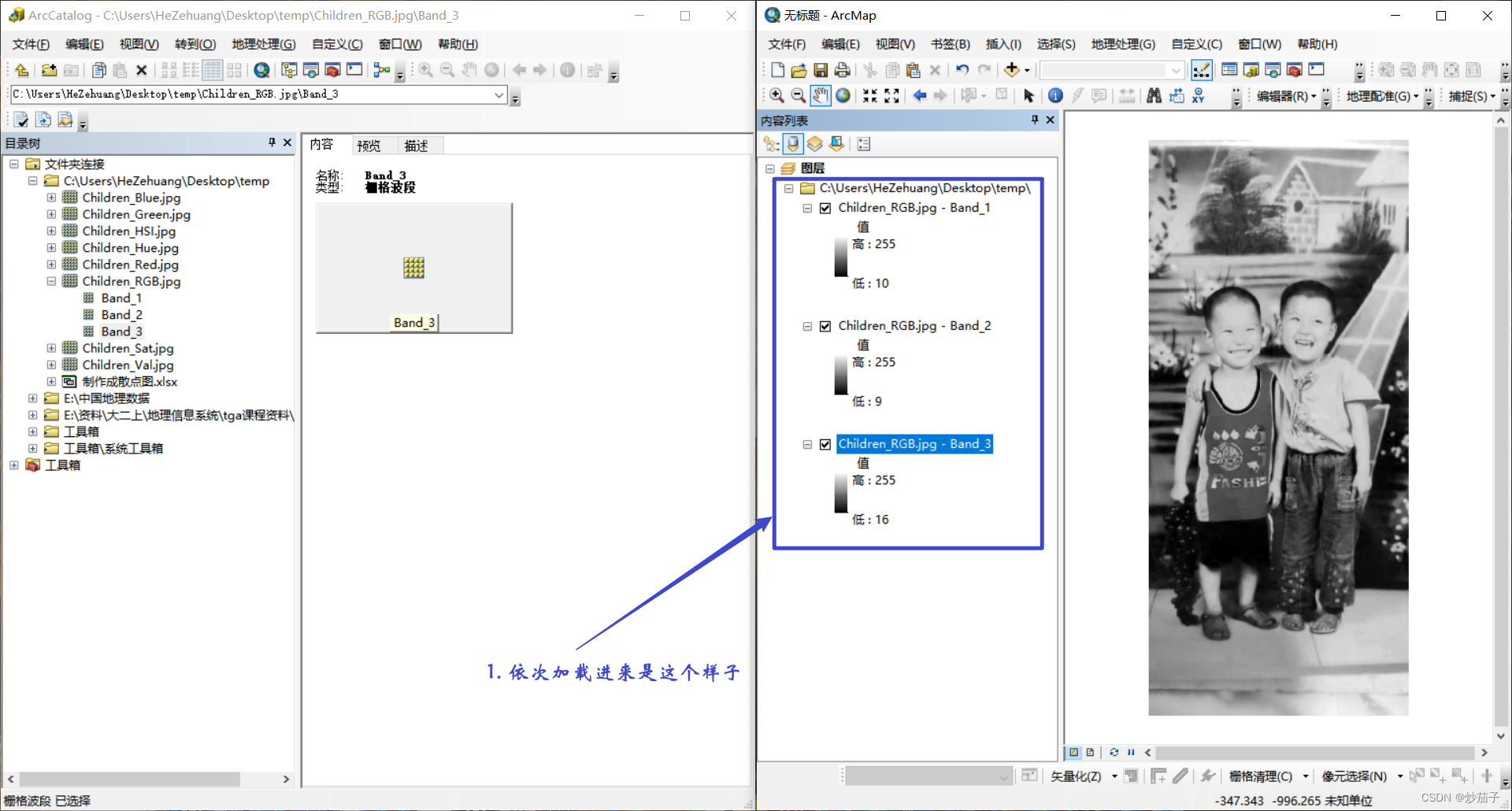 加载的三个波段效果显示: