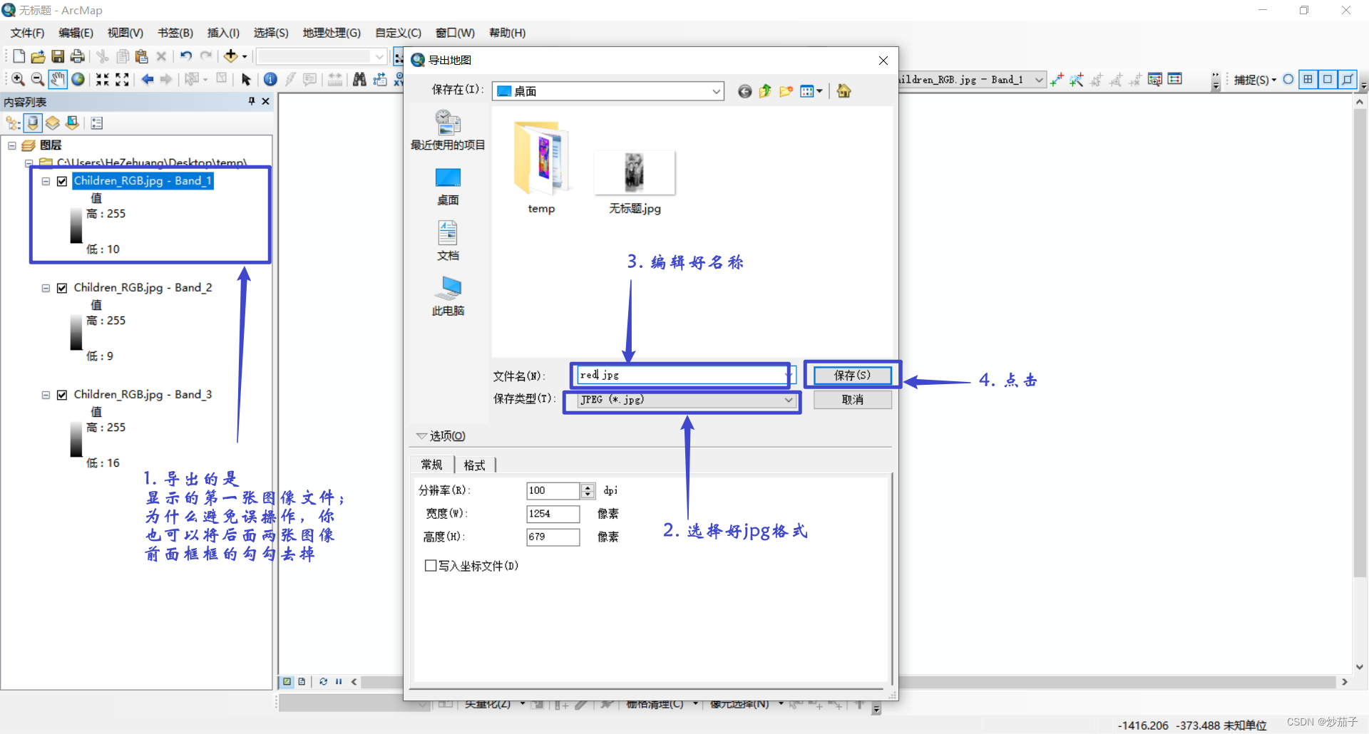 <至于其它波段也是如此,但是不要忘记,需要保存哪个波段影像就在数据视图层显示哪张影像,其它全部勾选为不显示>