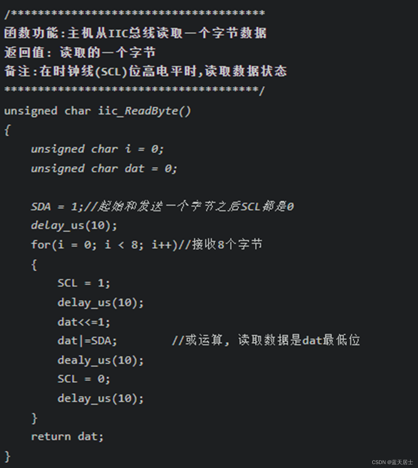 主机从IIC总线读取一个字节数据