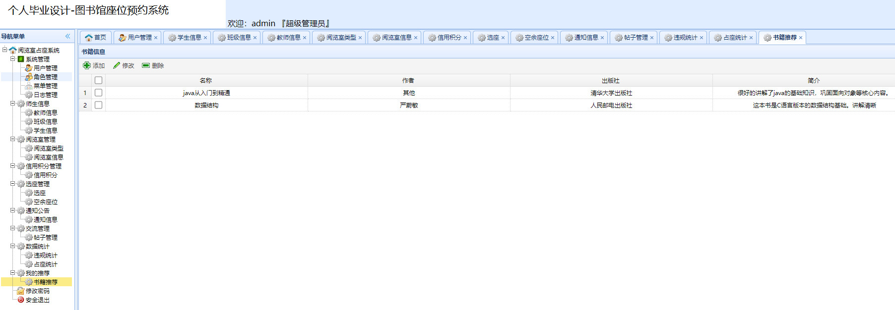 基于Java的图书馆阅览室预约管理系统的设计与实现