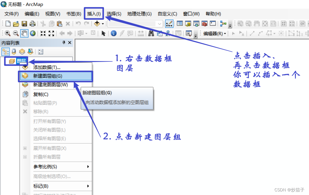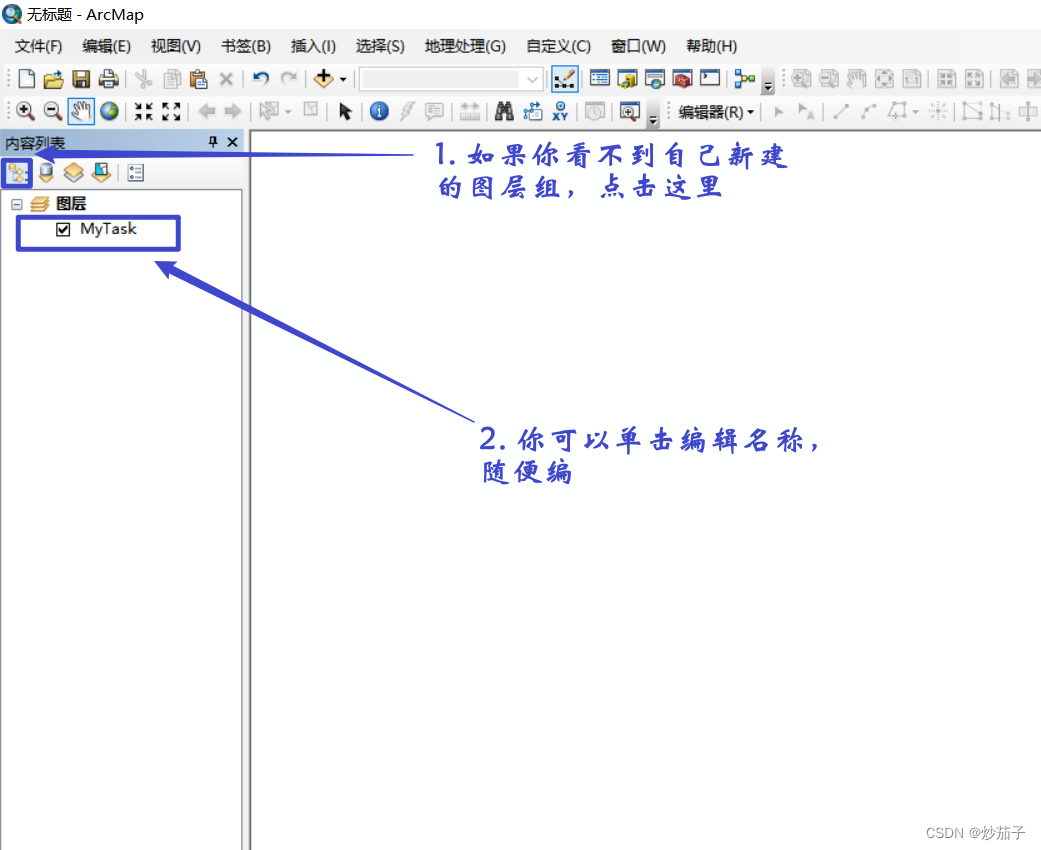 这里需要说明,图层组和数据框是不一样的,至于哪里不一样,希望有人能告诉,我只能意会不可言传...