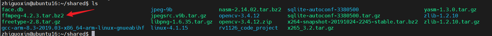 回到共享文件夹下,执行命令将freetype-2.8.tar.gz解压开来: