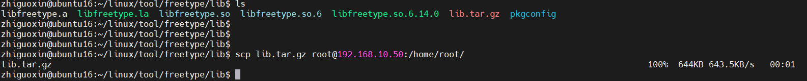 scp lib.tar.gz root@192.168.10.50:/home/root/